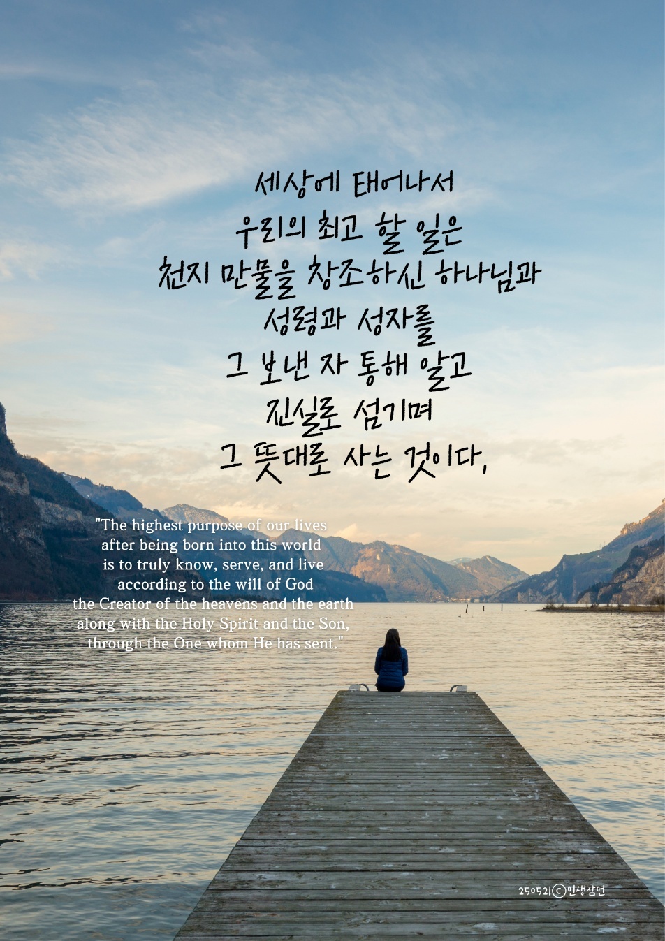 여호와는 나의 사랑이시니 언제나 나와 함께 하시며 뜻있은 곳으로 나를 인도하십니다.