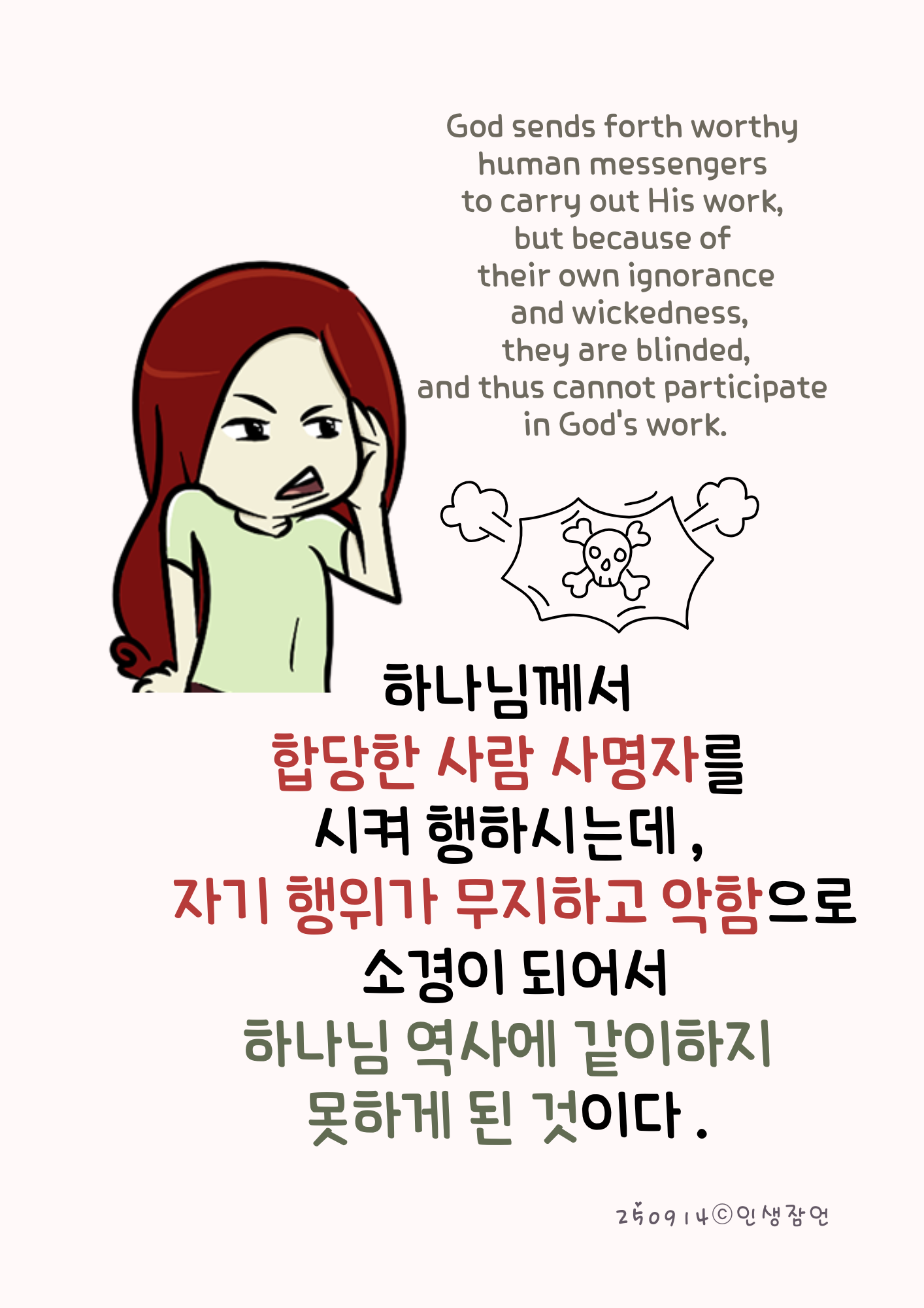신앙의 역사든지 사회의 역사든지 때가 되면 하나님의 새 역사를 따라가야 합니다. 따라가지 않은 자들은 그것이 얼마나 손해인지 당세에는 잘 모릅니다. 이런 자들은 후에 가면 갈수록 처참하게 삽니다. 마음이 무지하니 무지한 길로 가서입니다.