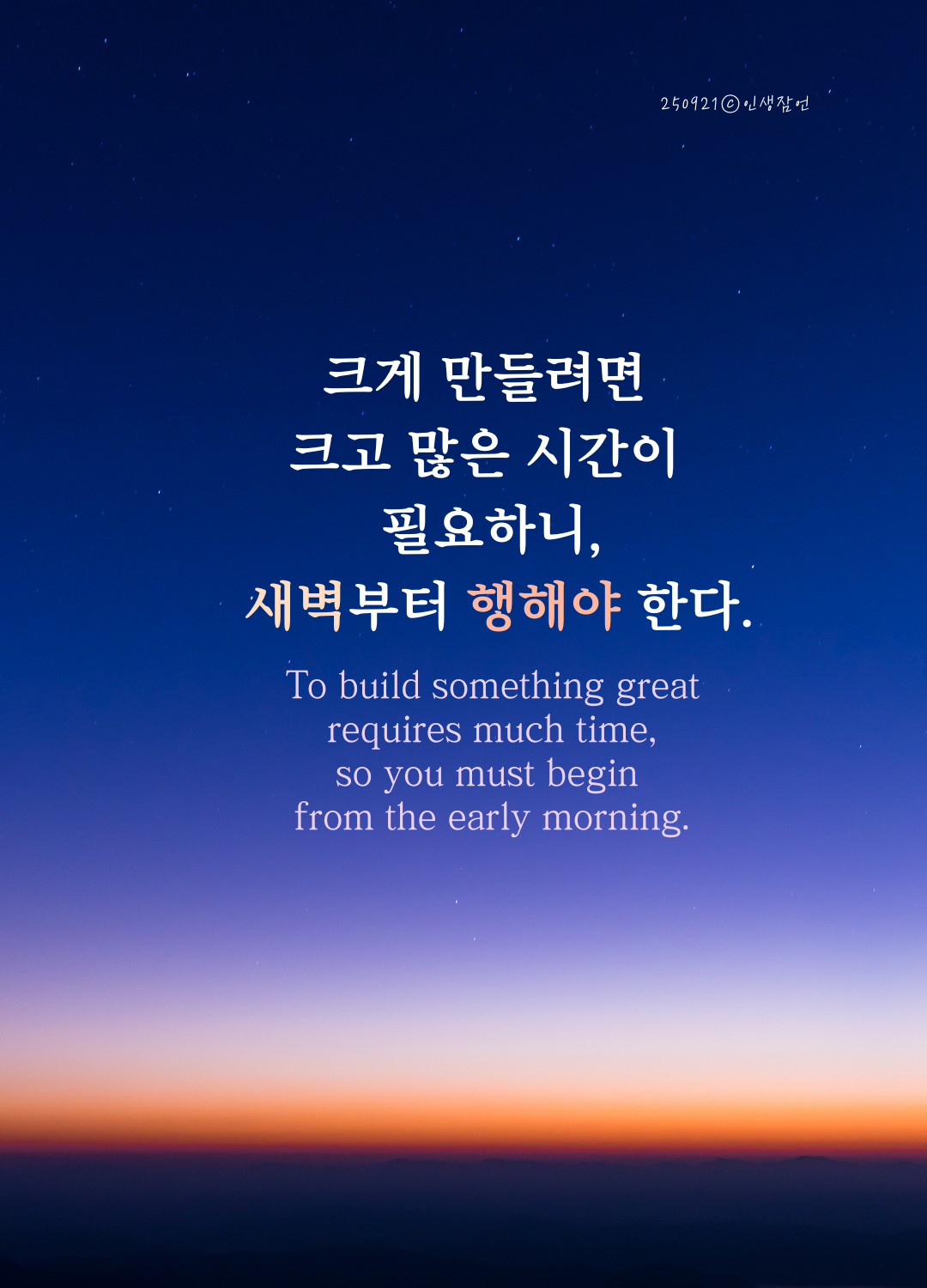 8. 크게 만들려면 크고 많은 시간이 필요하다. 그러므로 새벽부터 행해야 한다.