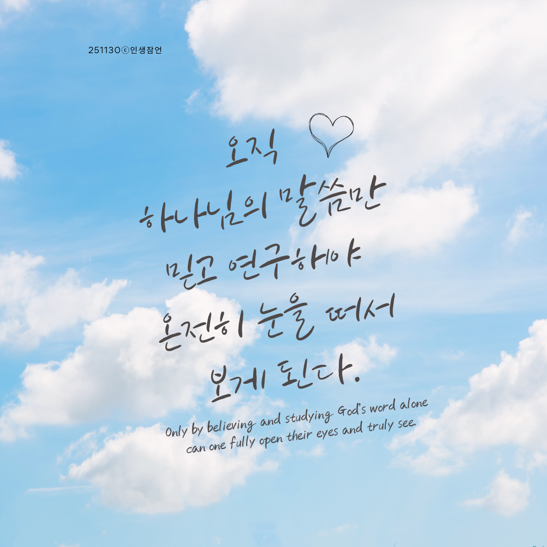 | 인식을 잘못하면 마음 눈이 멀어 버립니다. (3) | 2025.12.01 |