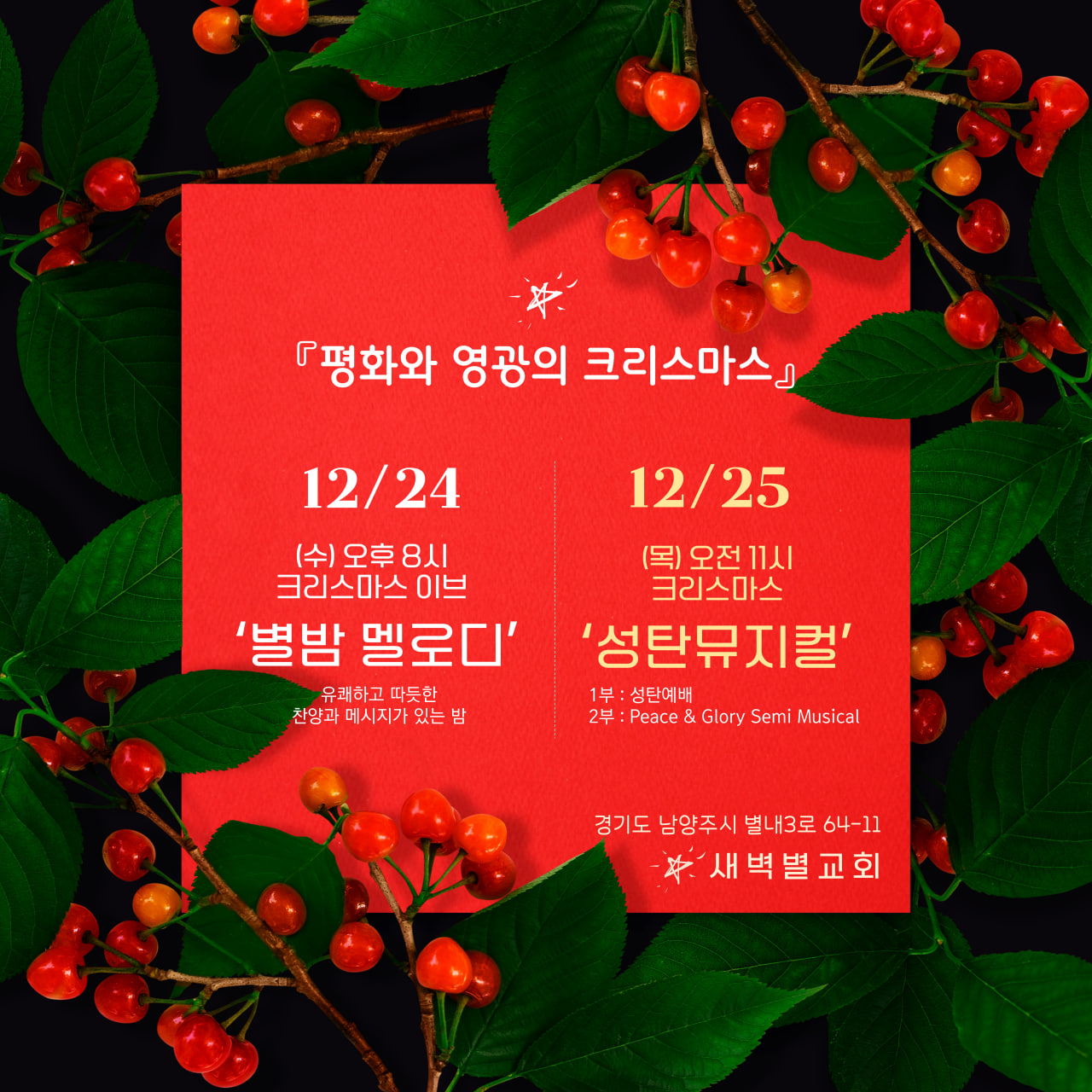 | Peace & Glory Christmas 2025 – 별내새벽별교회와 함께해요! (2) | 2025.12.09 |