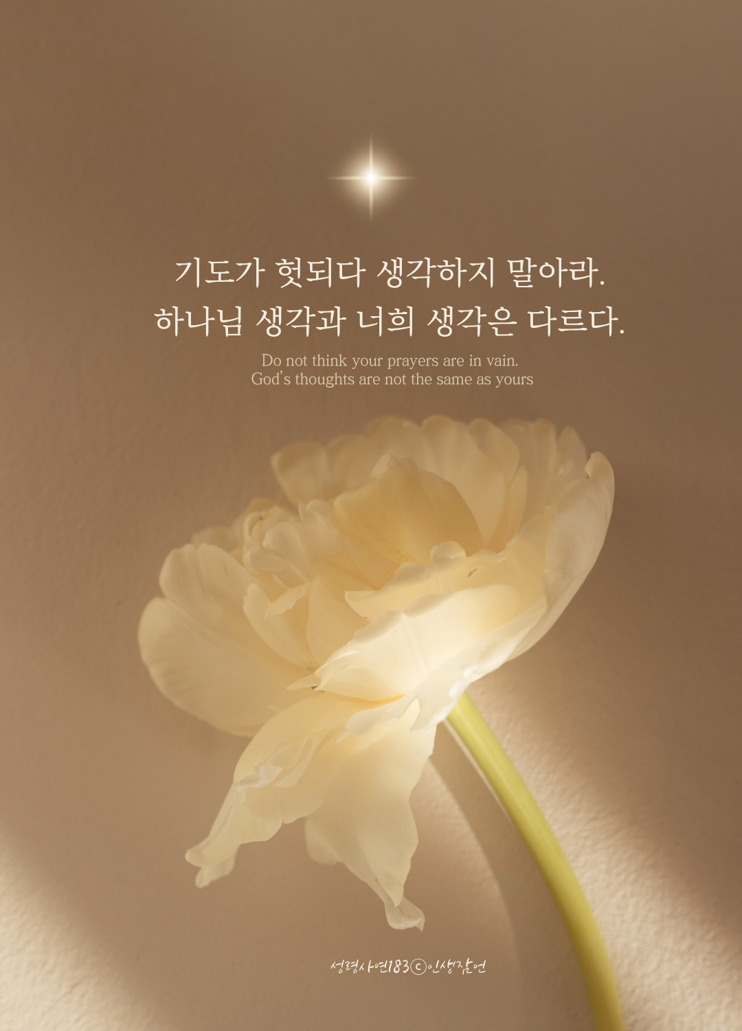 (사 55:8~9) “여호와의 말씀에 내 생각은 너희 생각과 다르며 내 길은 너희 길과 달라서 하늘이 땅보다 높음 같이 내 길은 너희 길보다 높으며 내 생각은 너희 생각보다 높으니라”