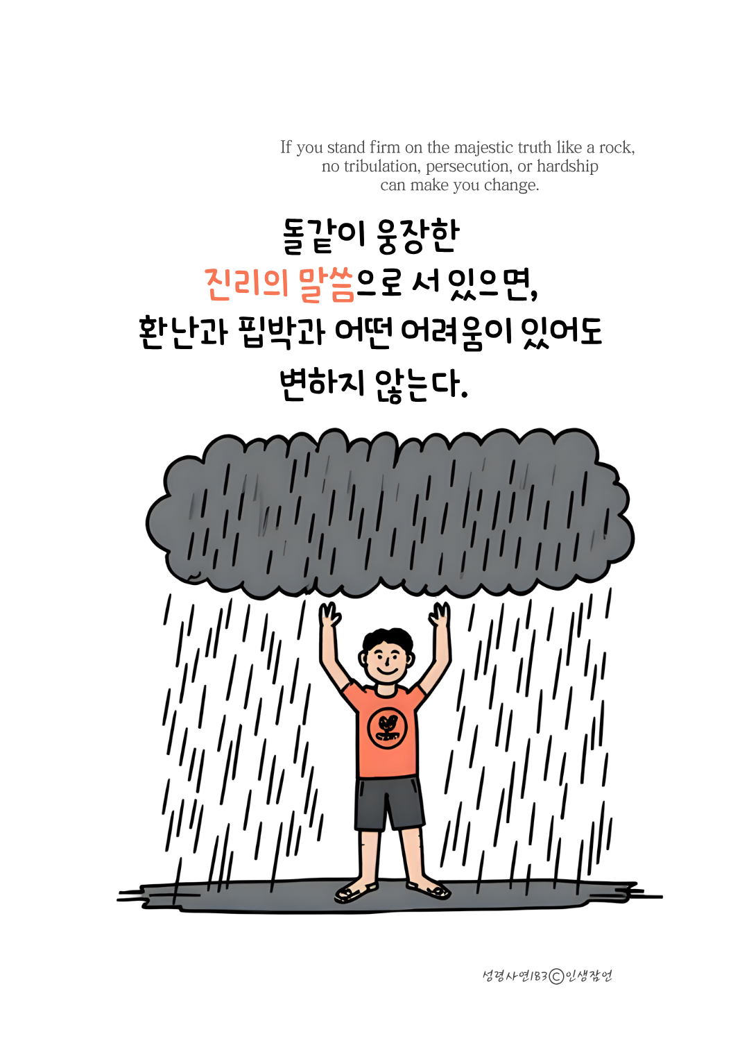 <요한복음 16장 33절> “이것을 너희에게 이름은 너희로 내 안에서 평안을 누리게 하려함이라 세상에서는 너희가 환난을 당하나 담대하라 내가 세상을 이기었노라 하시니라”