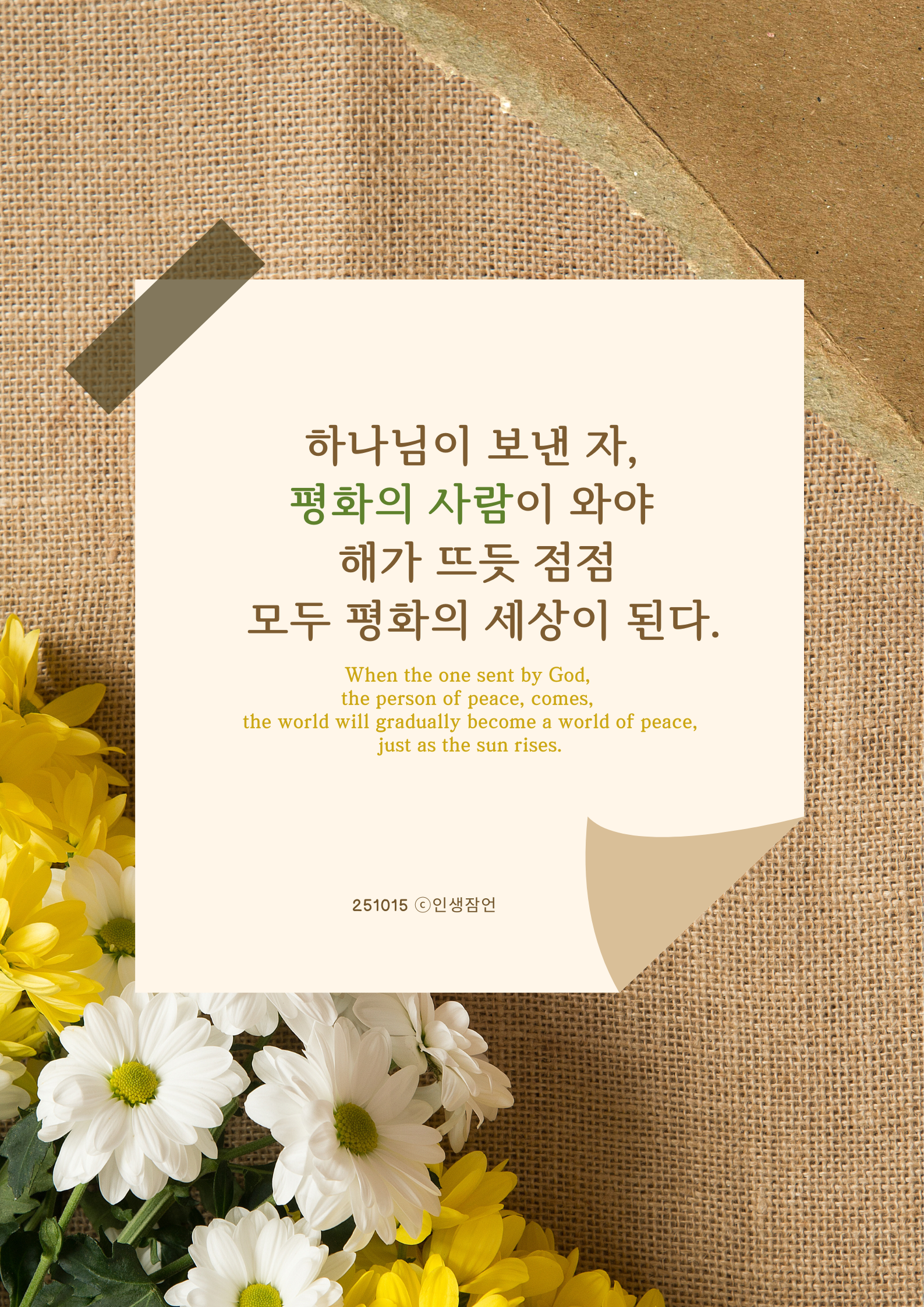 15. 자기 생각과 행위가 자기를 성공하게도 하고, 패하게도 한다. 고로 생각도 행함도 잘해야 한다. 오직 전능자 주와 일체된 삶이다.