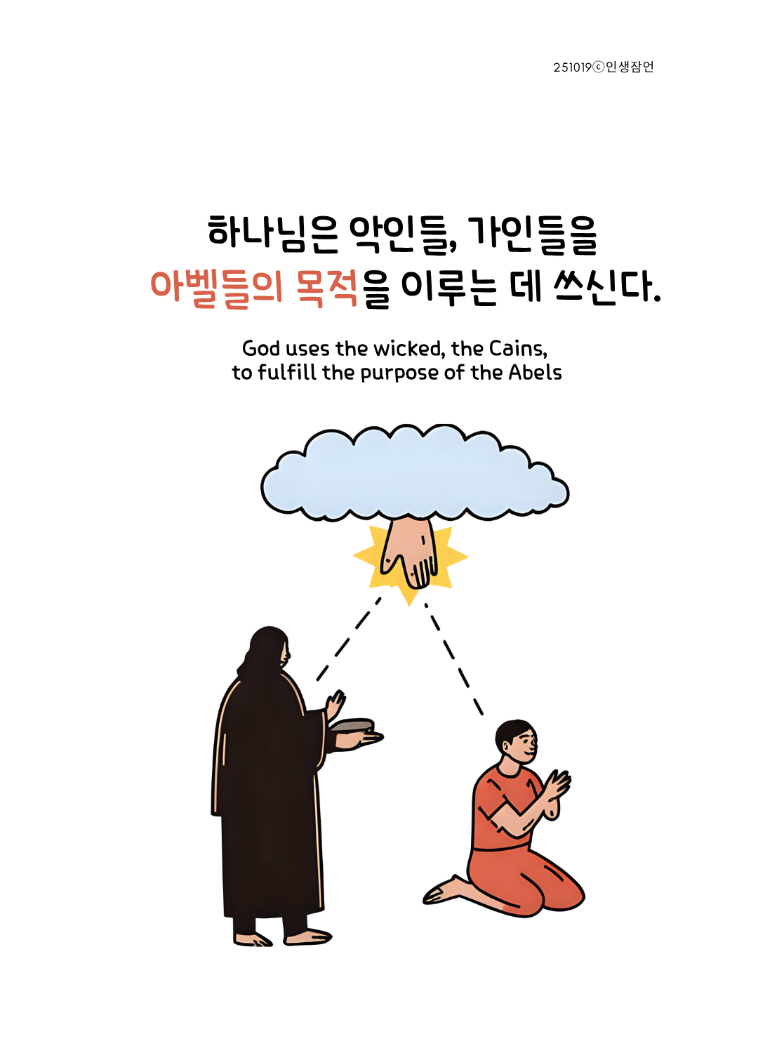 하나님은 악인들, 가인들을 아벨들의 목적을 이루는 데 쓰십니다.