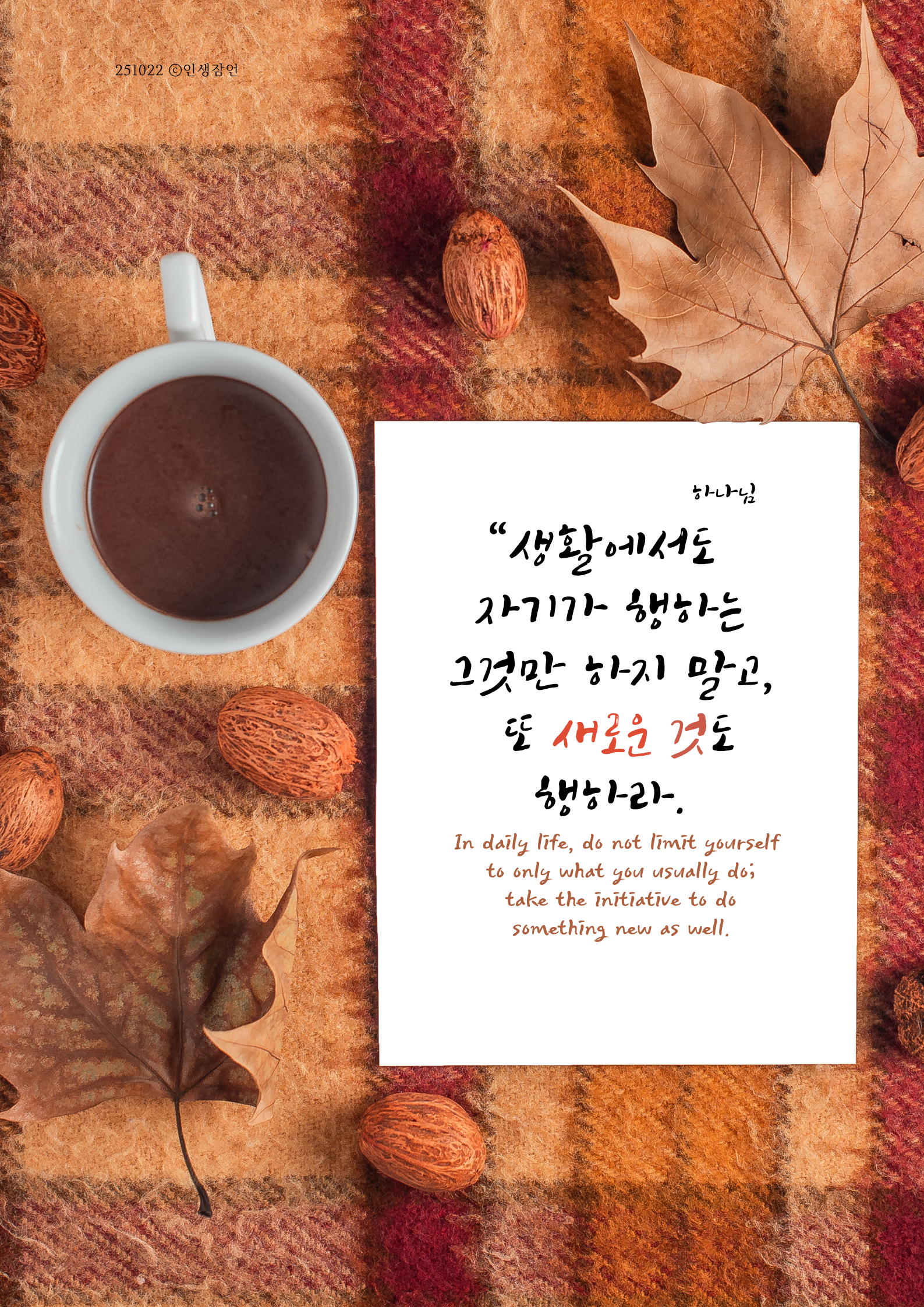 작은 습관이라도 이어가면 결국 삶의 감각이 깨어나고, 그 꾸준함이 여러분의 미래를 바꿉니다.
