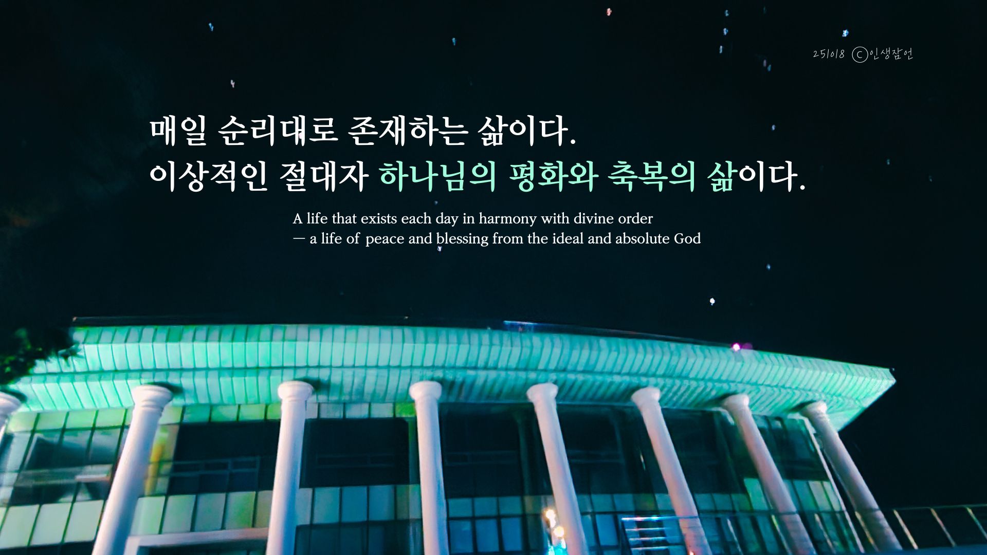 육이라도 전지전능하신 하나님과 일체 되어 그 생각, 뜻대로 살면 세상에서 육신 천국을 살게 됩니다. 허무, 공허, 무지를 떠나 이 세상에서도 하나님이 영계에 만드신 천국에서 사는 것처럼 마음도 천국, 육신도 천국을 누립니다.