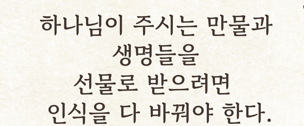 하나님이 주시는 만물과 생명들을 선물로 받으려면 인식을 다 바꿔야 합니다.