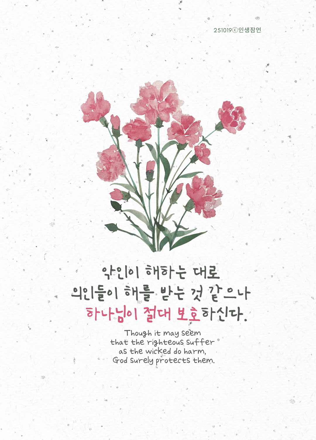 의인의 운명은 형통하는 길입니다. 결국은 뜻을 이루는 길로 가게 하셨습니다. 그런데 이것을 모르고 어려운 일 당한다고 낙심하고 탄식합니다. 사랑하니 현재의 고난으로 인하여 장차 영광으로 가는 길로 가게 하시는 것입니다.