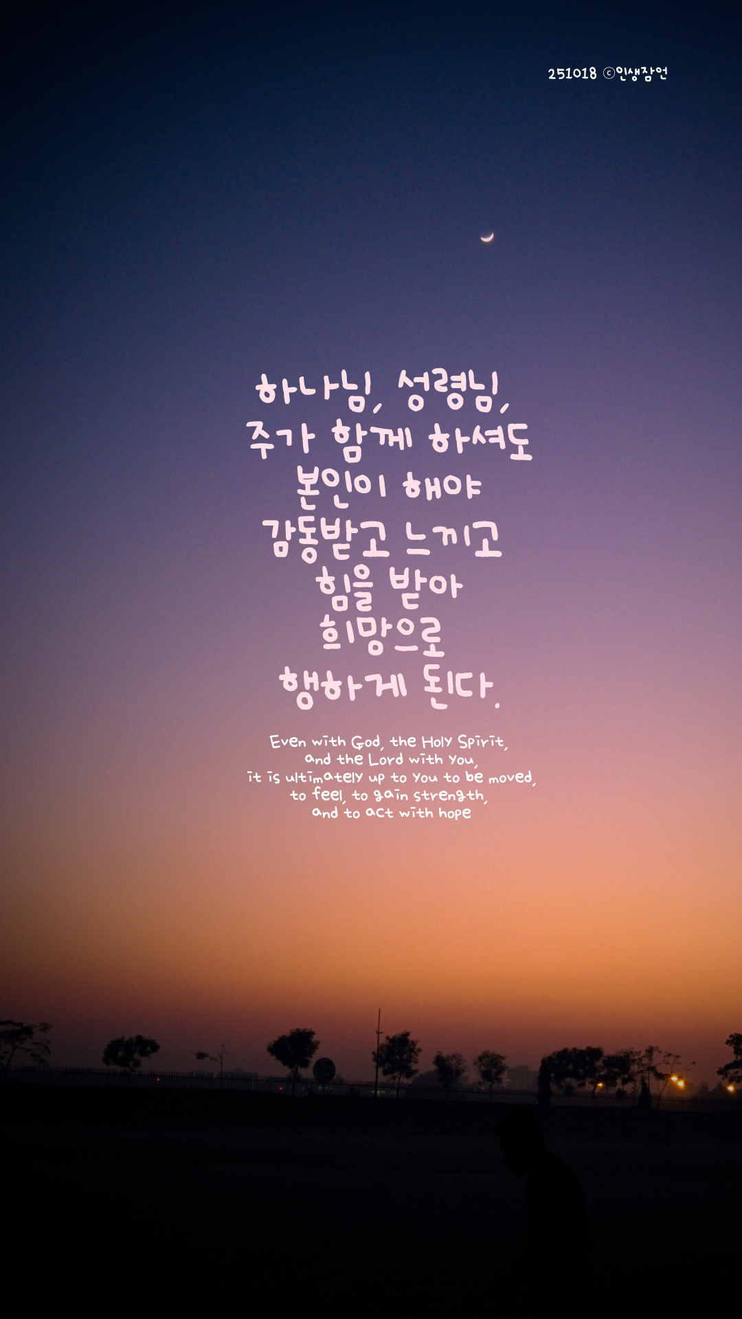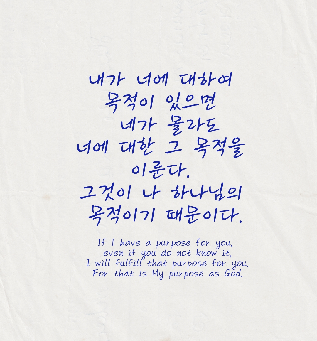 우리 하나님의 그 크신 목적을 저마다 끝까지 모두 이루도록 하나님의 사랑과 능력이 충만하고, 성령님이 항상 함께하시길 빕니다.